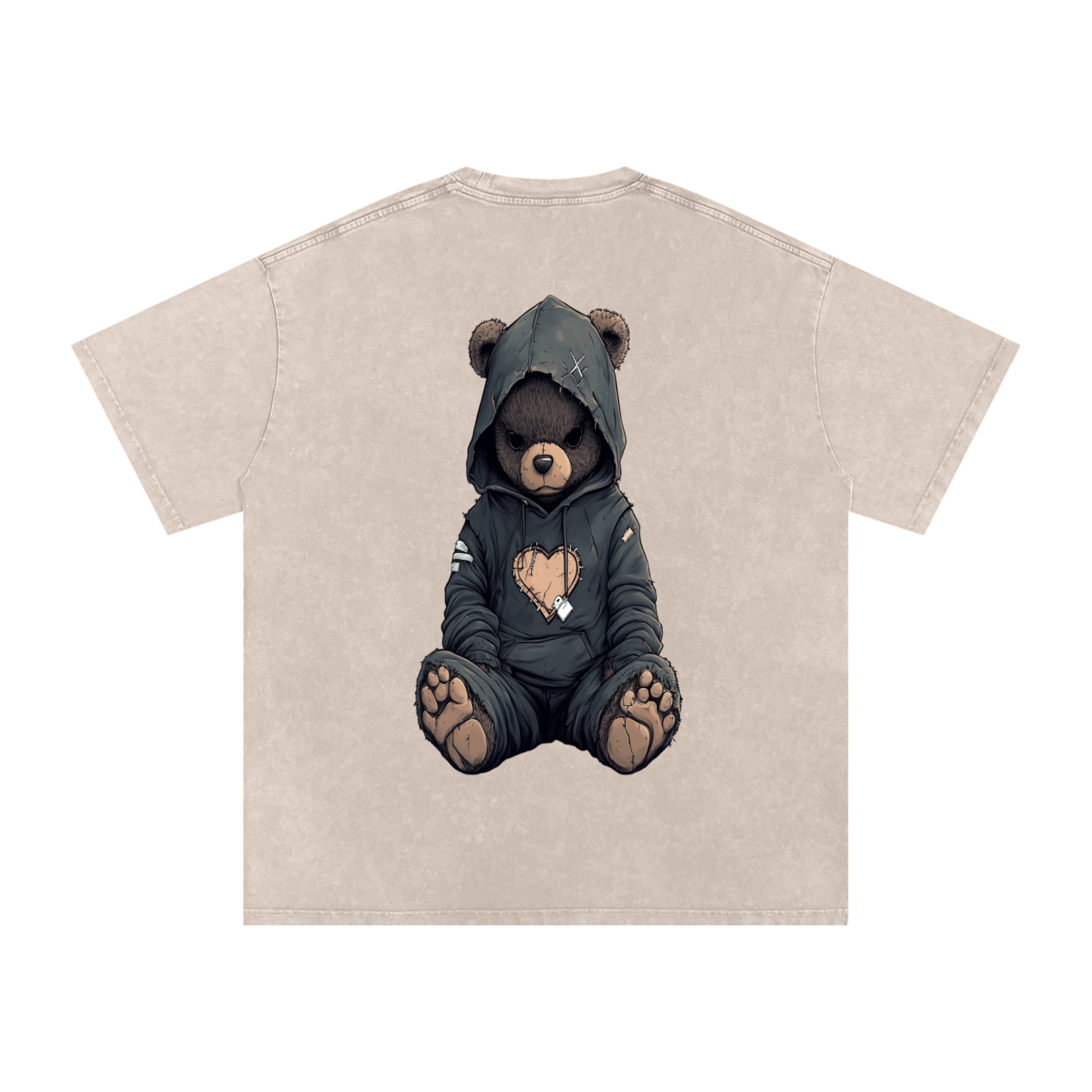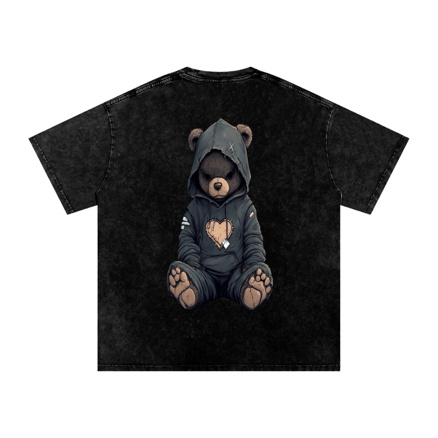 Meet Grim — the shadowed strength of the StitchHeart family. This washed black oversized tee isn’t just apparel — it’s armor for the introverts, the deep feelers, and the quiet survivors. Grim carries his stitched heart beneath a lowered hood, arms crossed, eyes watchful — a symbol of silent resilience that refuses to fade.